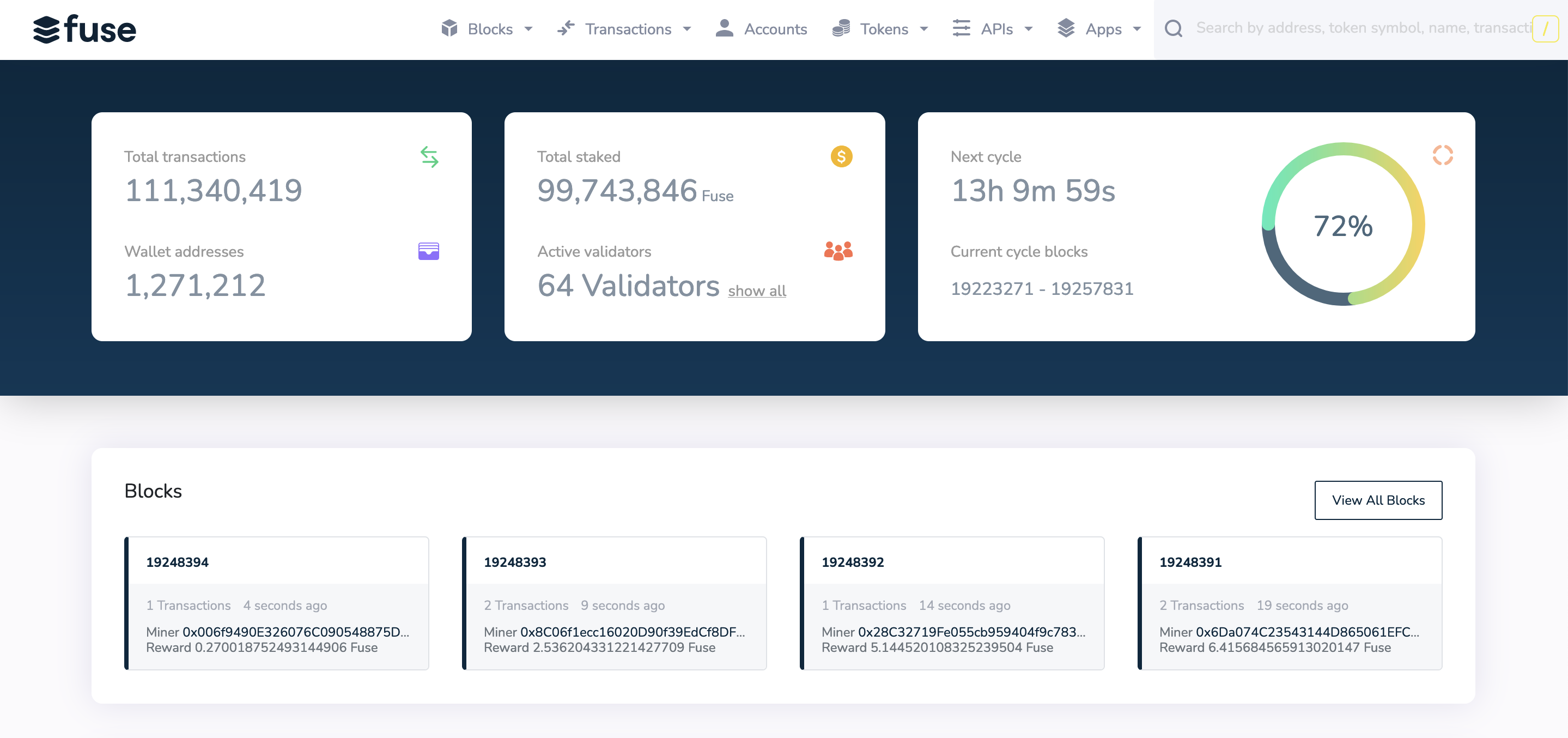 Blockscout is optimized for next-level blockchain exploration. Multichain, highly configurable, and open source, the explorer portal opens up access to all chain data and functionality. Search blocks, transactions and addresses, then go beyond to connect and interact with apps, bridges, wallets and more. The blockchain universe is yours to explore!
