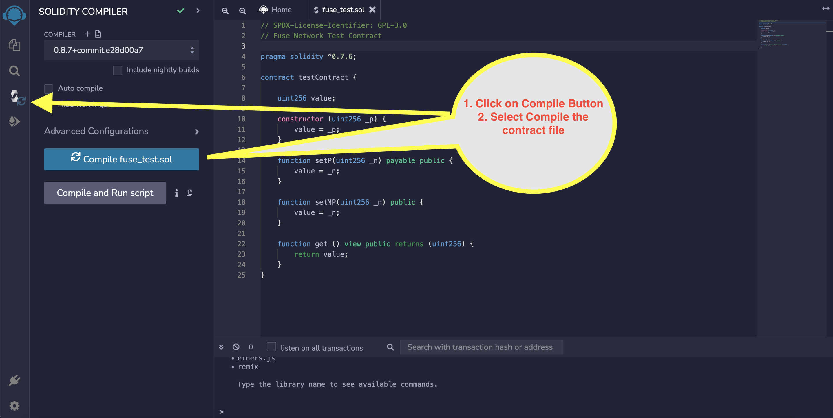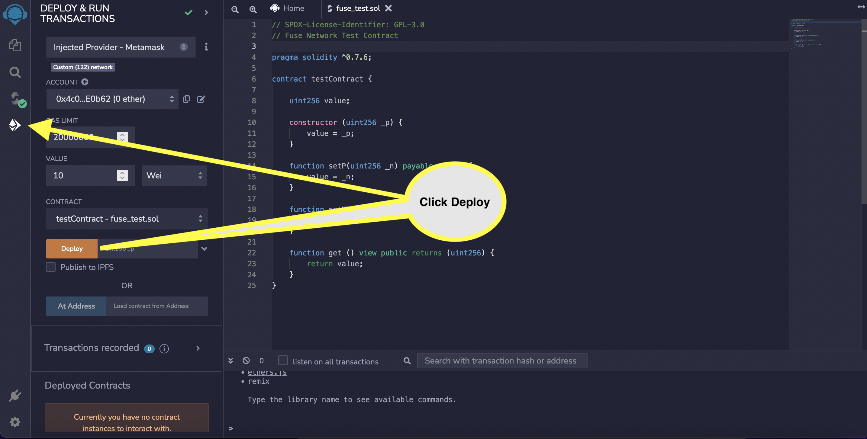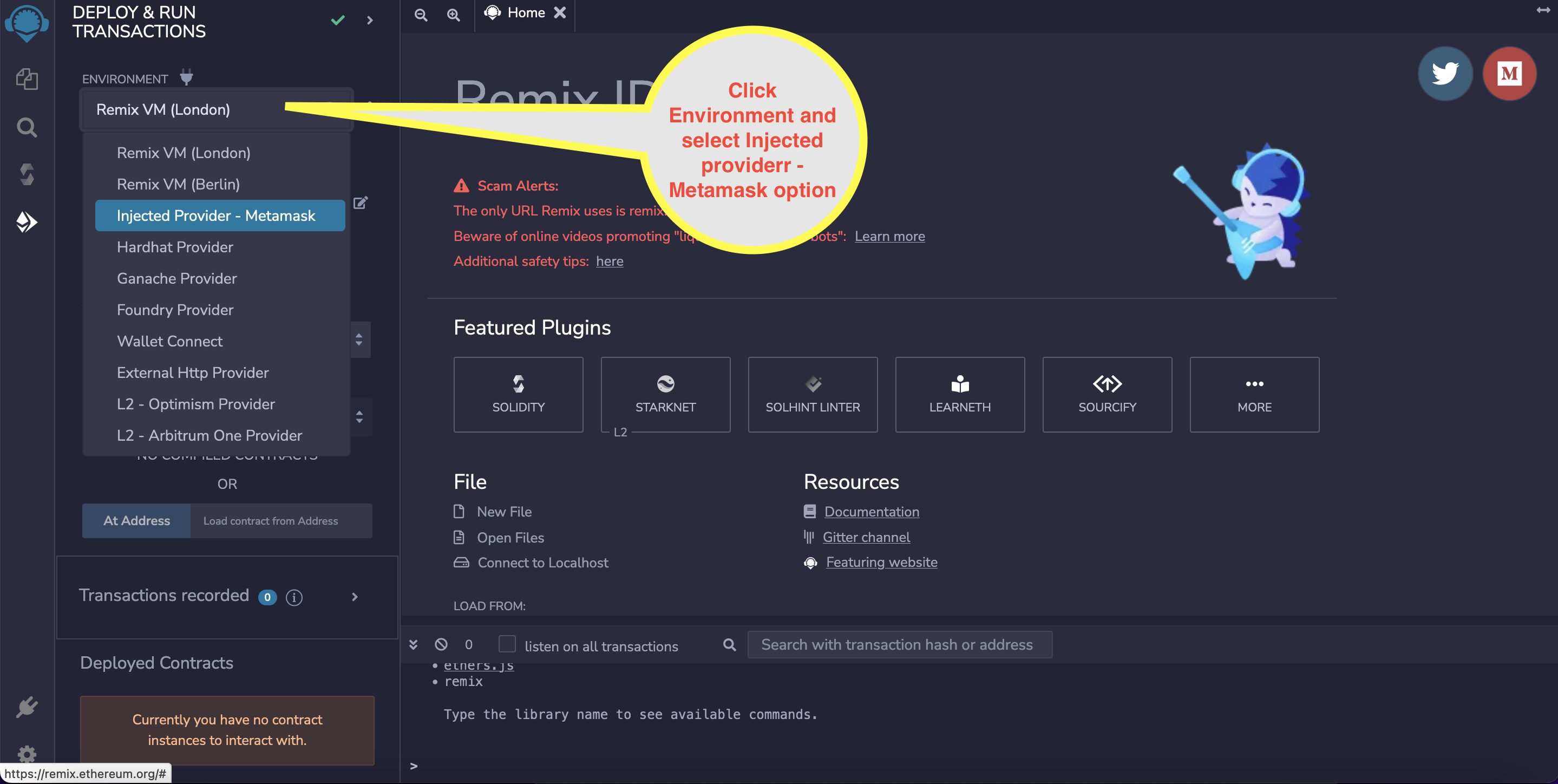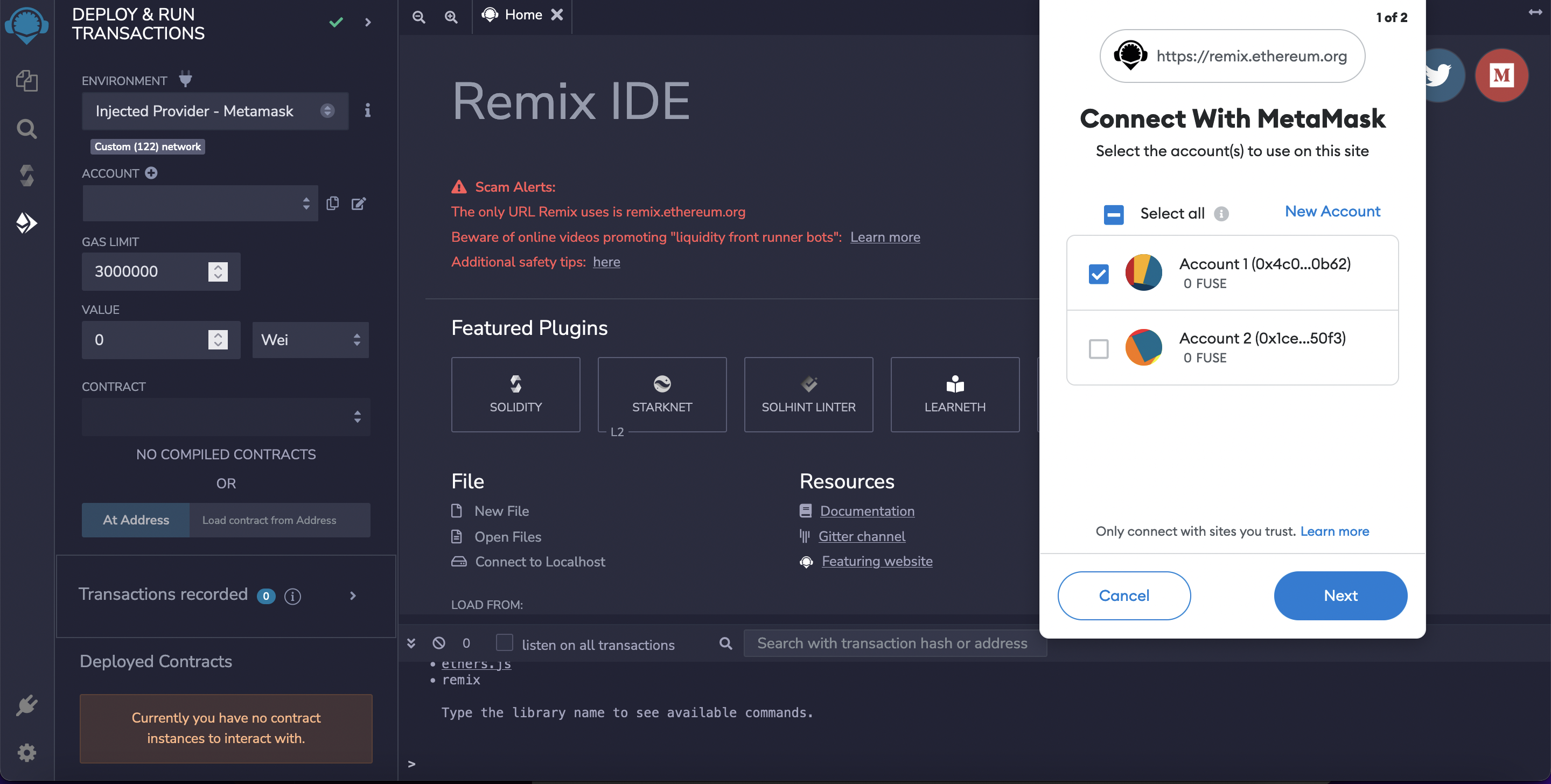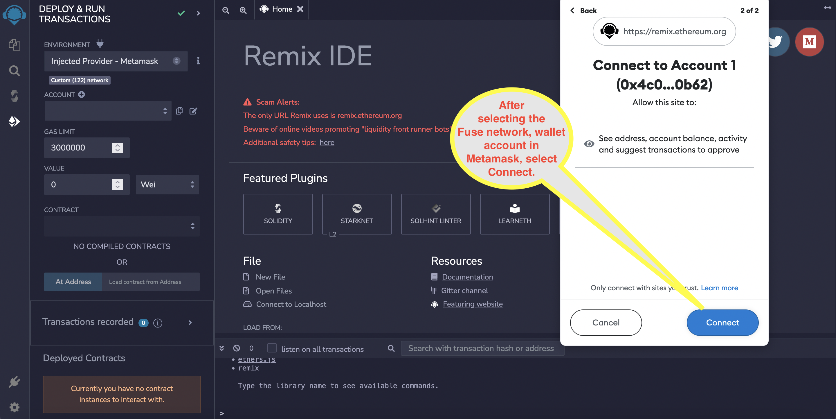 Click Connect to link your Remix IDE to Metamask with Mix network connection.