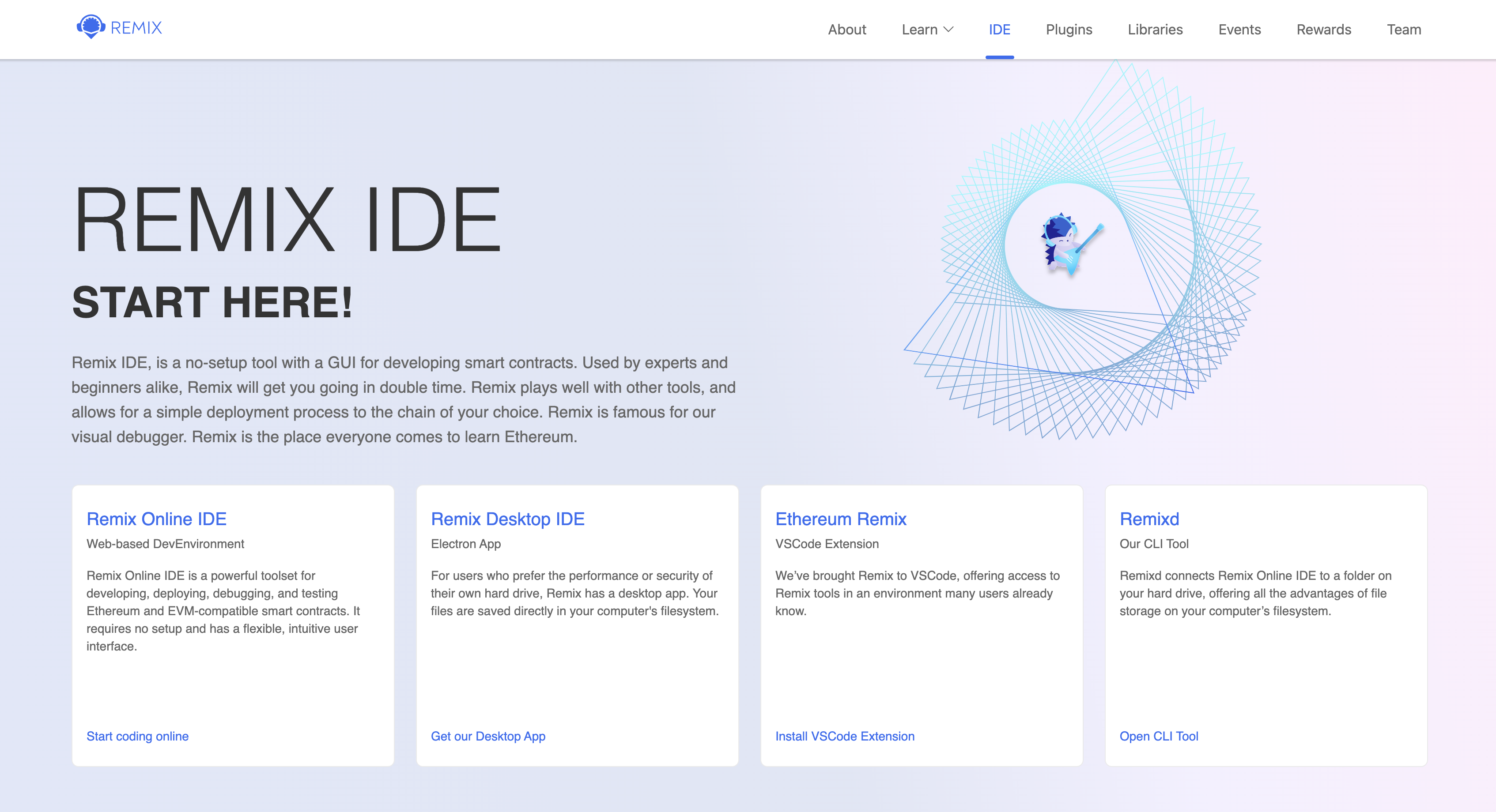 Remix is an IDE for smart contract development, including compilation, deployment, testing, and debugging.