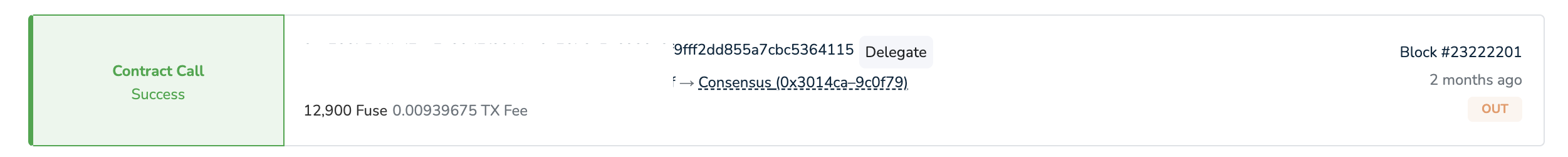 - Search for your wallet address on miexs.com and find the last ‘delegate’ transaction on the ‘transactions’ list that you made to the validator address that went offline.\
