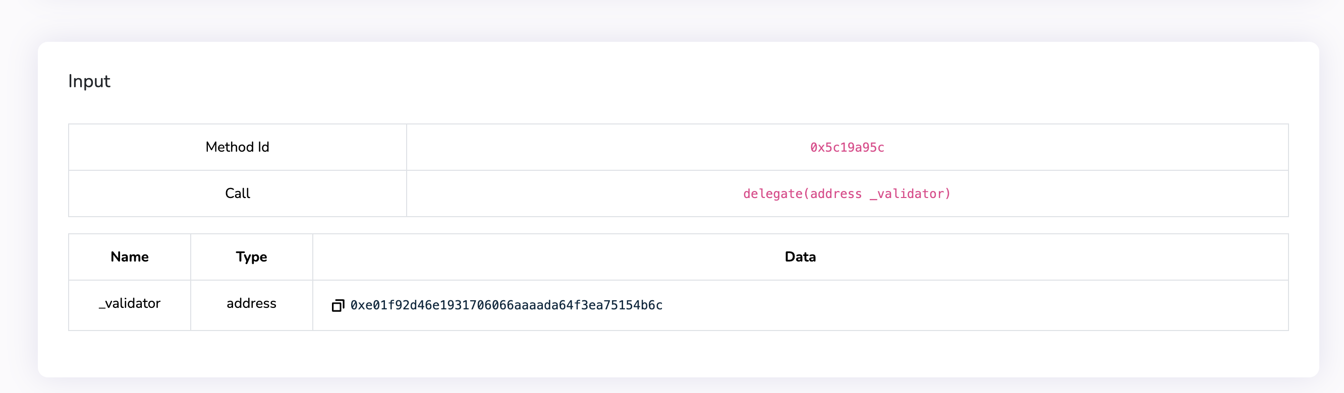 - Expand the transaction and scroll down until you see the validator address section. Copy this validator address.\