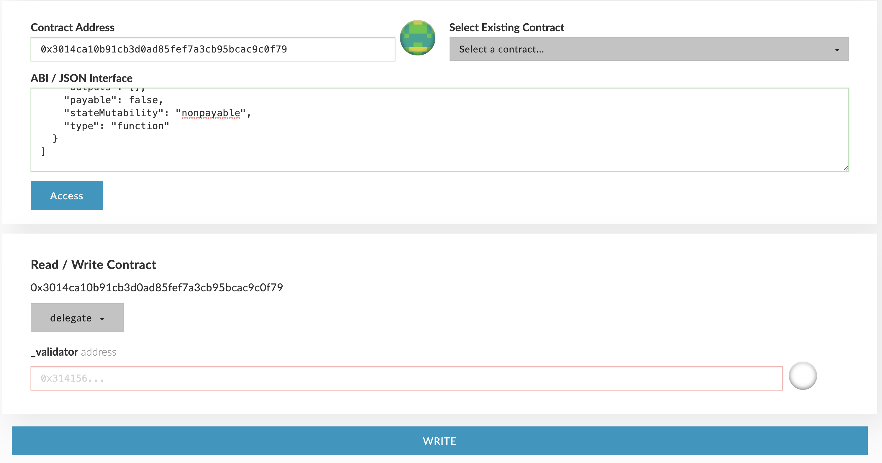 Mix token holders who don't want to run a node alone but still wish to participate in governing the network can delegate any amount to one of the validators. Delegating is done by calling the `delegate` function on the consensus contract with the validator address as data (see the screenshot from MEW).